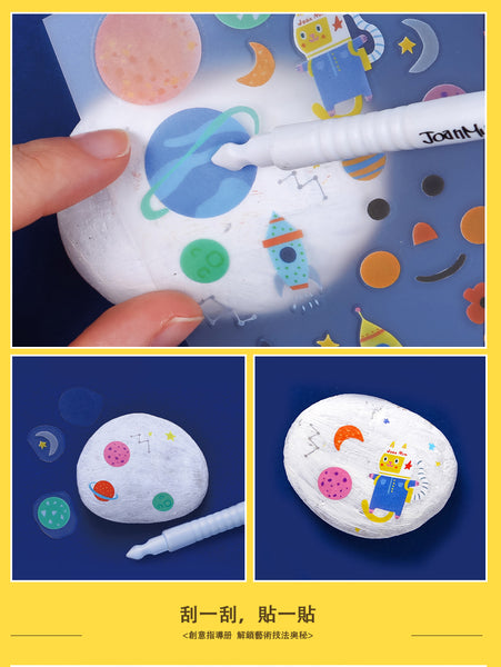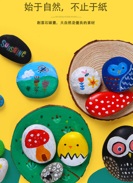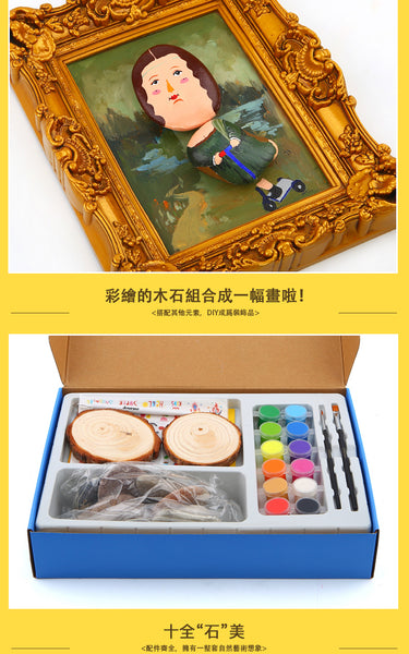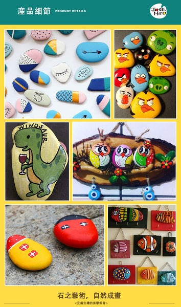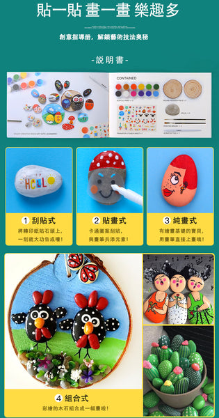 乳花台石* 10圓形木片* 2丙烯酸漆* 12轉移貼紙* 1畫筆* 2刮筆* 1說明書* 1