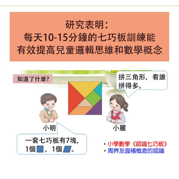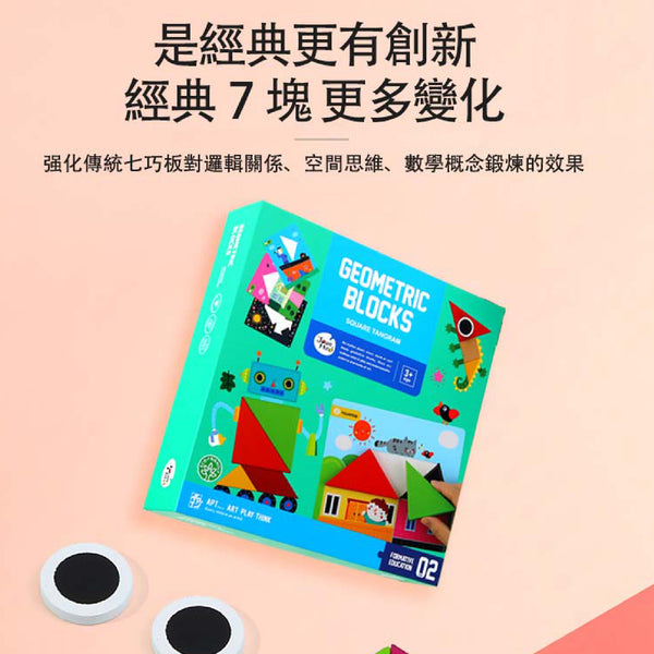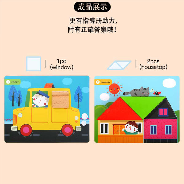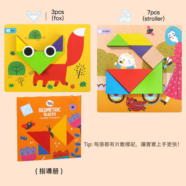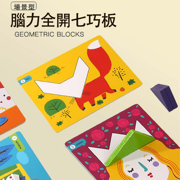 這是典型的動手操作式學習活動,培養空間感、辨別顏色、手眼協調及解難能力。這盒積木附有九塊彩色木塊形狀及17張雙面印刷圖案的紙卡。可嘗試拼湊並完成所有的挑戰!也可自行創作。包含:幾何木塊* 9雙面紙卡*17