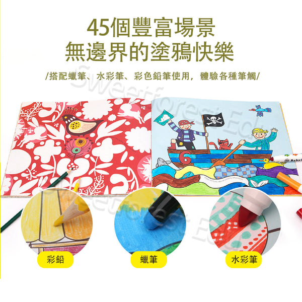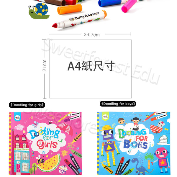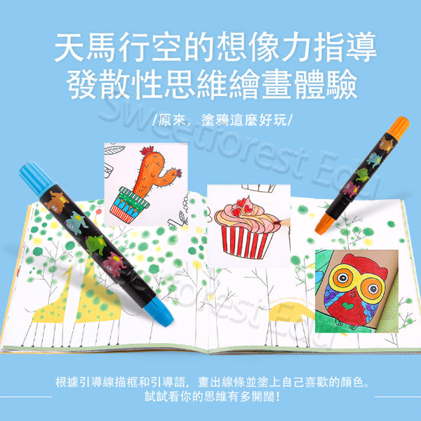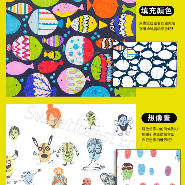 享受Jar Melo的藝術世界中的自由繪畫風格! 色彩填充,創建新圖案,各種元素的組合,形式的變化……我們的小小小藝術家可盡量發揮潛藏的藝術細胞,並從中發展其獨特魅力。
