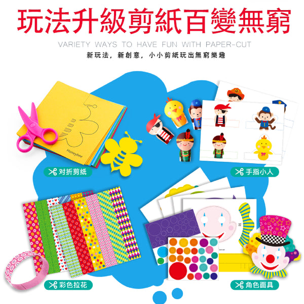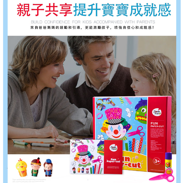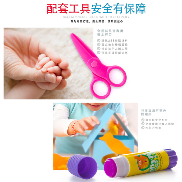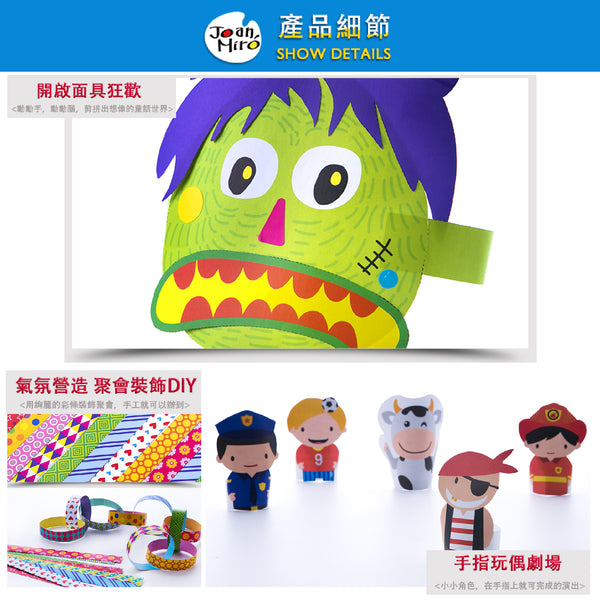 剪紙是一項有趣的遊戲! 通過剪切,粘貼,用紙創作,孩子們可發展他們的操作技能以及他們的想像力。 享受JoanMiro Fun剪紙套裝,享受剪紙和紙藝!包含:基礎彩色剪紙包 (80張)手指小人剪紙包(2張)拉花剪紙包(2張)面具剪紙包(4張可折2個)不干膠貼紙(2張)兒童固體膠(1支)安全小剪刀(1把)說明書(1本)