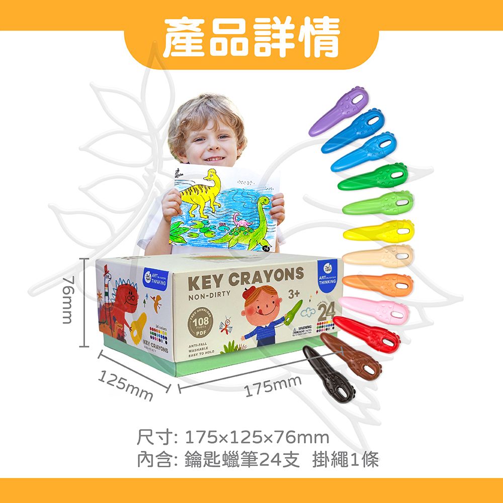 JarMelo鎖匙蠟筆筆觸流暢,色彩鮮豔,非常適合寶寶發展對顏色的認知。