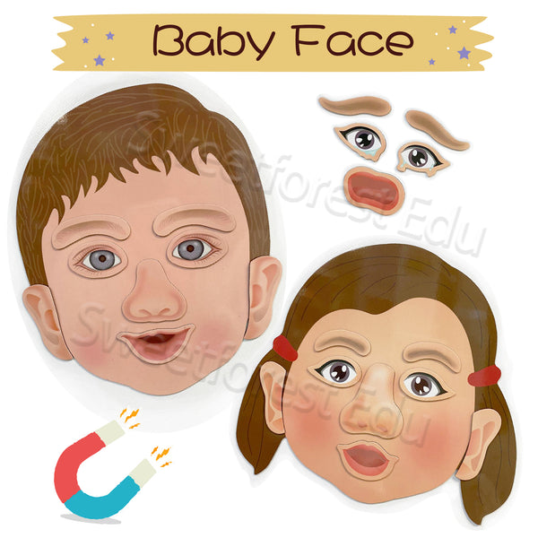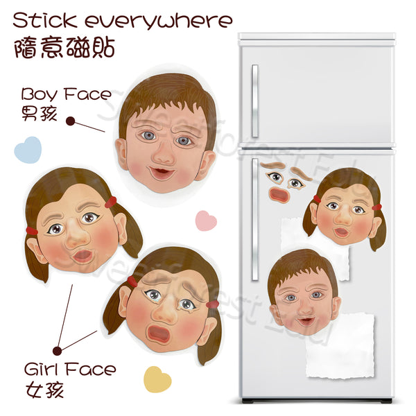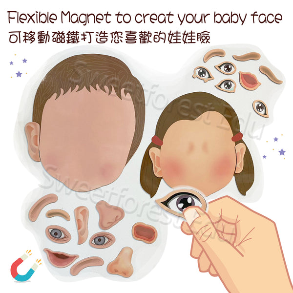 -Two types of the design (Boy and Girl) -Flexible magnet -Let children know the organs on face -Allows children to make their doll expressions -Can be used as ordinary magnetic stickers