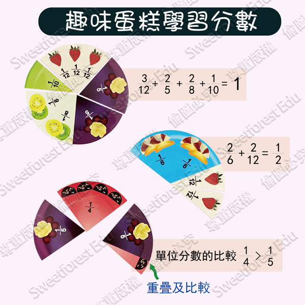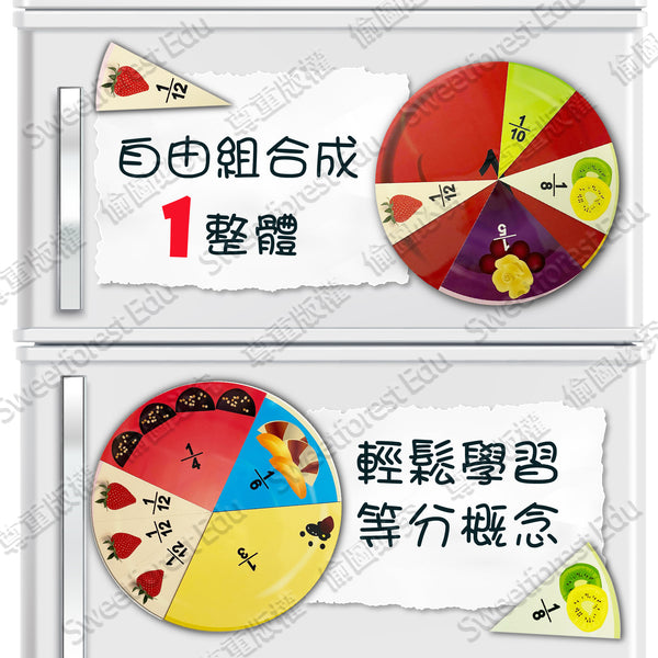 甘霖教育 - 蛋糕分數盤趣味蛋糕學習分數,更易於幫助小孩對分數的理解,也可作磁貼直徑:20*0.8mm9片裝